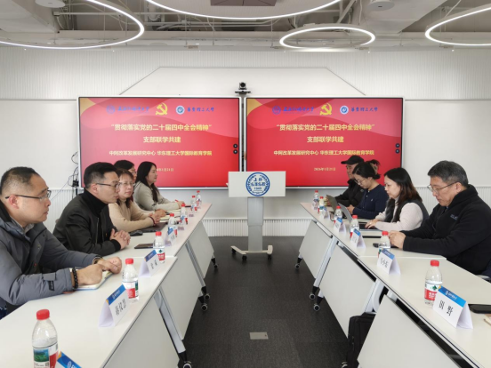 2026年1月21日,华东理工大学国际教育学院党支部在院长、党支部书记李霄鹏的带领下,赴上海外国语大学松江校区与上外中阿改革发展研究中心党支部开展联学共建活动。本次活动旨在深入学习贯彻党的二十届四中全会精神,以党建为引领,以学术为纽带,推动中阿人文交流与教育合作,探索党建工作与业务发展深度融合的新路径。